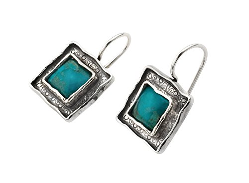 Best Seller! Female Shablool Silver Earrings 925 Sterling Silver Turqouise Square Green Review