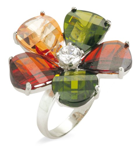 Best Seller! Lauren Lee Sterling Silver Topaz Colour, Green colour and Red Colour Cubic Zirconia Ring Review