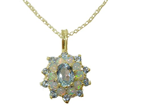 Best Seller! Luxury Womens Solid Yellow 10ct Gold Natural Aquamarine & Opal 3 Tier Large Cluster Pendant Necklace with 20" Chain Review