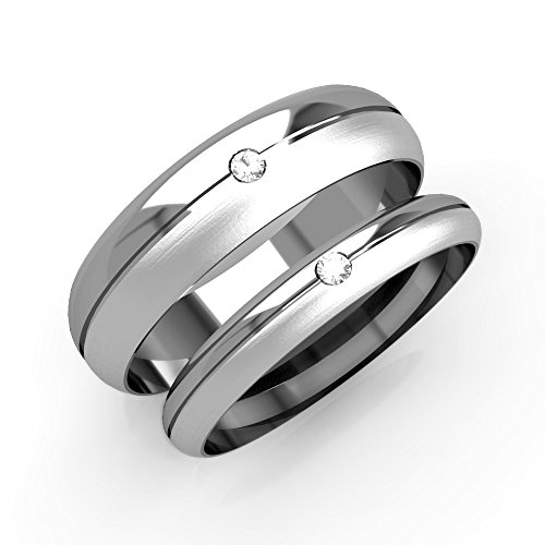 Best Seller! Matching His And Hers Wedding Rings. White Gold D Shaped Bands Half Polished Half Brushed Matt Finish Each Set With 1 Diamond. Review