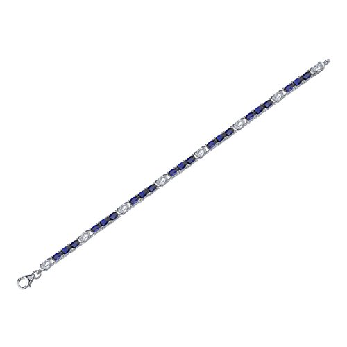 Gemstones: Lab Created Blue Sapphire: 21 pieces, Oval Shape 5 x 3 mm. White Cubic Zirconia: 8 pieces, Oval Shape 6 x 4 mm. Gemstones have a deep rich color and tremendous fire. Bracelet: 11.10 grams Pure Sterling Silver with .925 stamp 7 1/4 length, 1/8 width. Bracelet features one of a kind design with a beautiful White Gold finish. 100% Money Back Guarantee.