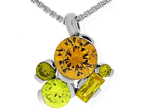 Best Seller! Silver Ladies' Champagne, Peridot, Yellow & Olive Cubic Zirconia Modern Necklace Review