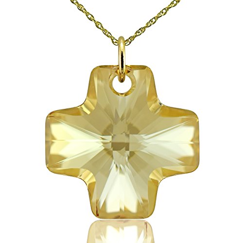 Best Seller! Solid 9ct Gold Cross Pendant & 18" Necklace Chain Jewellery Set with Golden Shadow Swarovski Crystal Review
