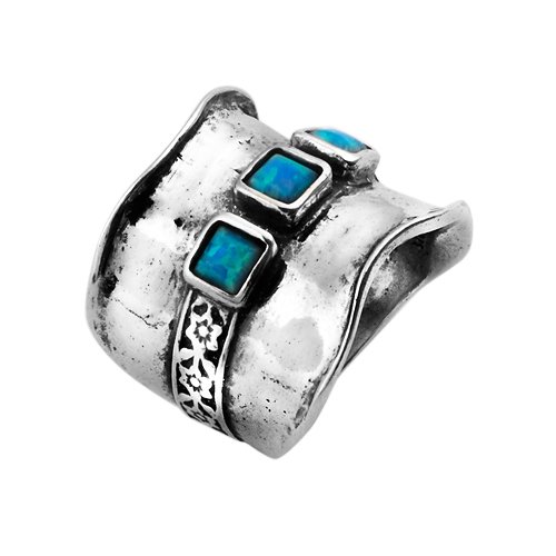 Shablool offer Sterling Silver Wide Ring Adorned W/ Florish Band 4X4mm Square Opal Cabs Stones. This awesome product currently limited units, you can buy it now for £40.00, You save -